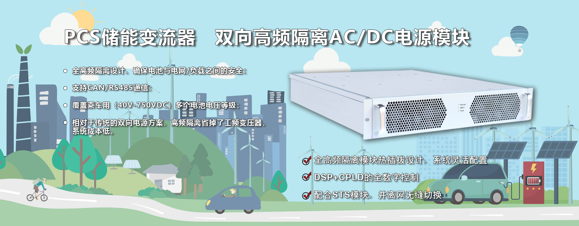 專為中小型工商業儲能系統量身打造的模塊化變流器產品,支持并網、離網運行。該模塊支持雙向能量流動、超寬范圍電池電壓,可與不同類型電池搭配使用,滿足不同應用場景的需求
